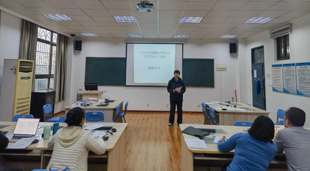 本网消息 为规范本科毕业论文管理,保障人才培养质量,11月17日,外国语学院2026届本科毕业论文开题答辩在X2教学楼各指定多媒体教室有序开展。学院组建11个答辩评审小组,覆盖了英语、商务英语两个专业的238名毕业生。教务处吴琦老师莅临现场指导。