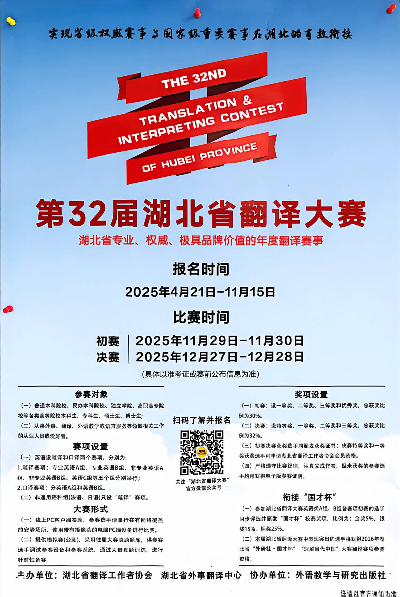 11月23日湖北理工学院第二十届科技文化节英语翻译大赛和11月29日第32届湖北省翻译大赛初赛如期举行。两场比赛涵盖政治、经济、文化、科技等多个领域,不仅深度检验了参赛者的语言能力,更全方位锤炼了其跨文化交际素养。一篇篇精心打磨的译文,尽显参赛选手独树一帜的理解视角与表达才华,为整场赛事注入鲜活而亮丽的色彩。