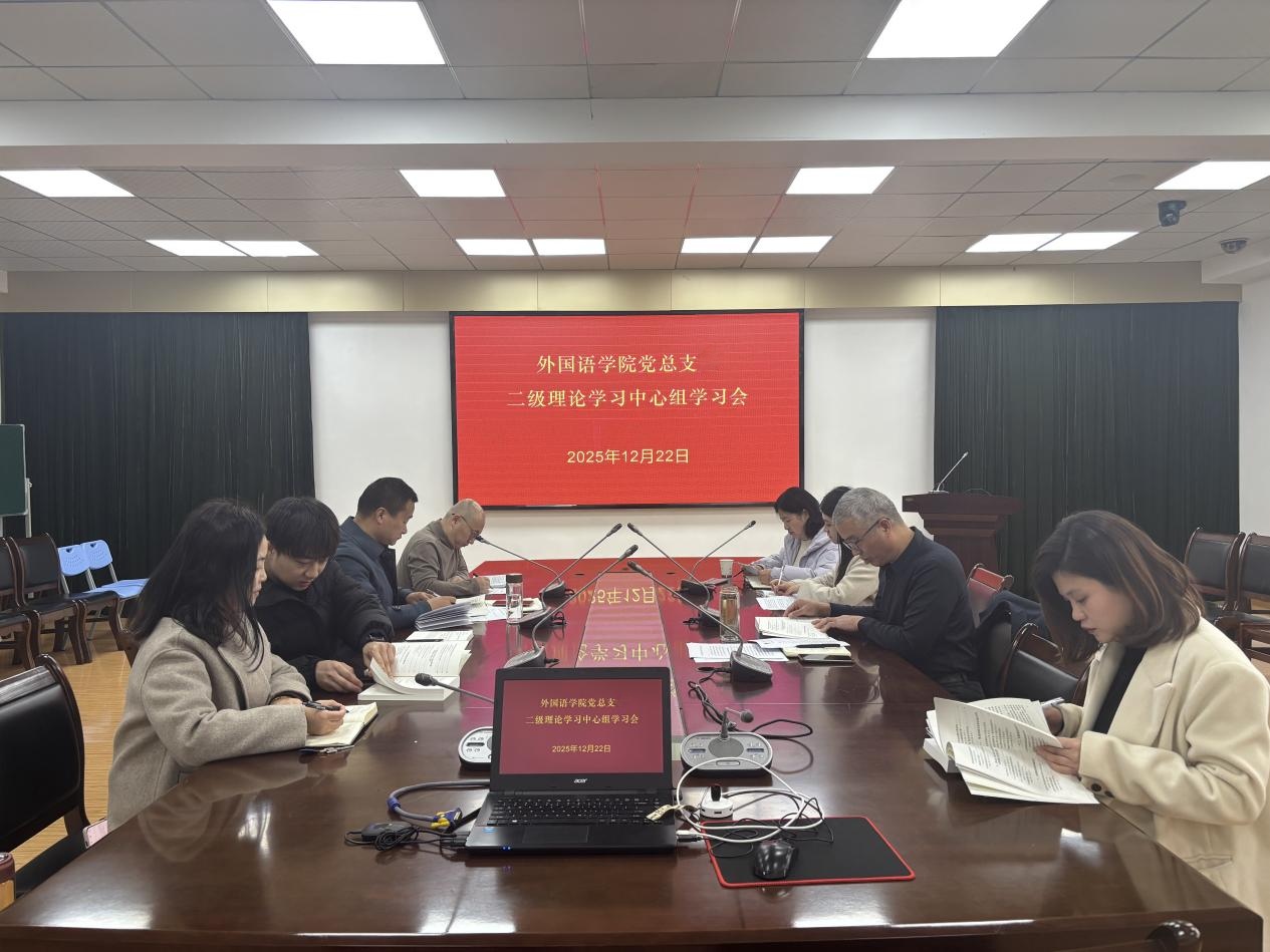 本网消息 12月22日上午,外国语学院在X2-304室召开二级理论学习中心组12月学习会。学院党总支书记占赢主持会议,中心组全体成员参会。