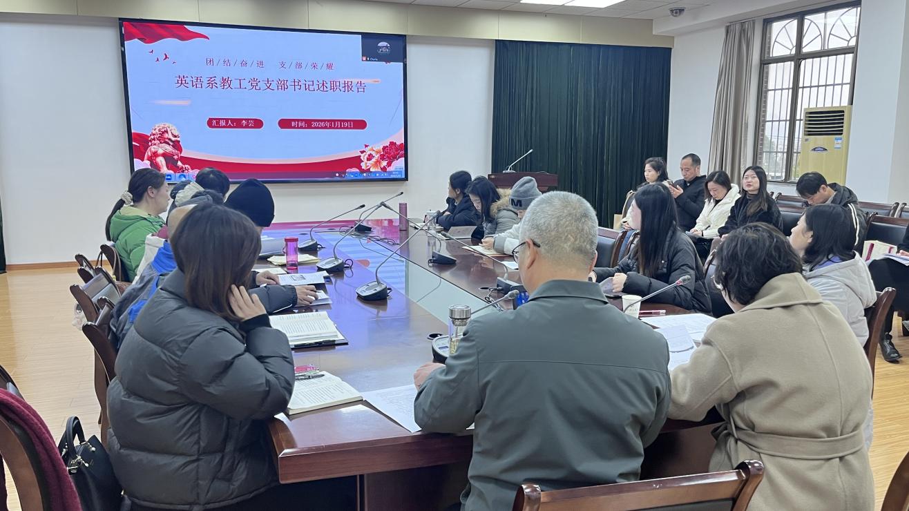 各党支部书记围绕党建主体责任落实、思想政治建设、党员队伍建设及党建与业务融合等核心工作进行汇报。英语系教工党支部成功获批校级“双创”培育创建单位,创新打造“四融课堂”模式,深入推动思政教育与专业教学深度融合。公外部教工党支部严格落实“三会一课”制度,设立党员示范岗与责任区,组织党员教师深入学生社区开展英语四六级、考研辅导等学业帮扶活动,切实助力学生学业提升。学生党支部在党员培养和实践育人方面成效显著,其“蒲公英志愿服务队”获评全国大中专学生“三下乡”社会实践活动国家级重点团队。