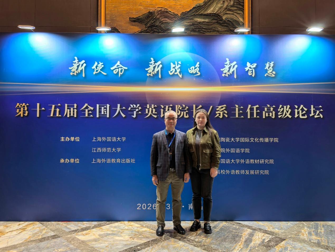 本网消息 3月12日至15日,由教育部高等学校大学外语教学指导委员会、上海外国语大学、江西师范大学联合主办,上海外语教育出版社承办的第十五届全国大学英语院长/系主任高级论坛在江西南昌隆重举行。本次论坛以“新使命、新战略、新智慧”为核心主题,紧扣时代发展脉搏,聚焦人工智能赋能教育、大学英语教育改革、复合型国际化人才培养等关键议题,汇聚全国高校外语教育领域专家学者,共商外语教育高质量发展大计。外国语学院党总支书记占赢、公外部教研室主任袁媛应邀出席。